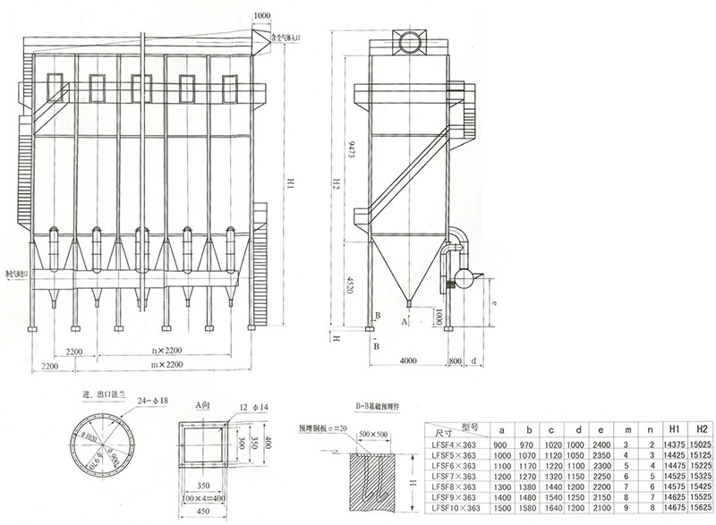 3.除尘器用FU150链式输送机排灰,长度及走向由工艺确定;